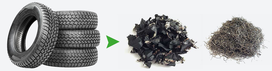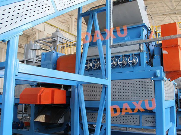 Daxu tire shredding system is designed to produce up to 6 tons per hour of wire free rubber mulch. This system produces up to a 99% wire free chip ranging in size between 12-25mm (0.47’’and 1.0’’) depending on the desired size. After processing, the steel is removed by our magnetic separation system.